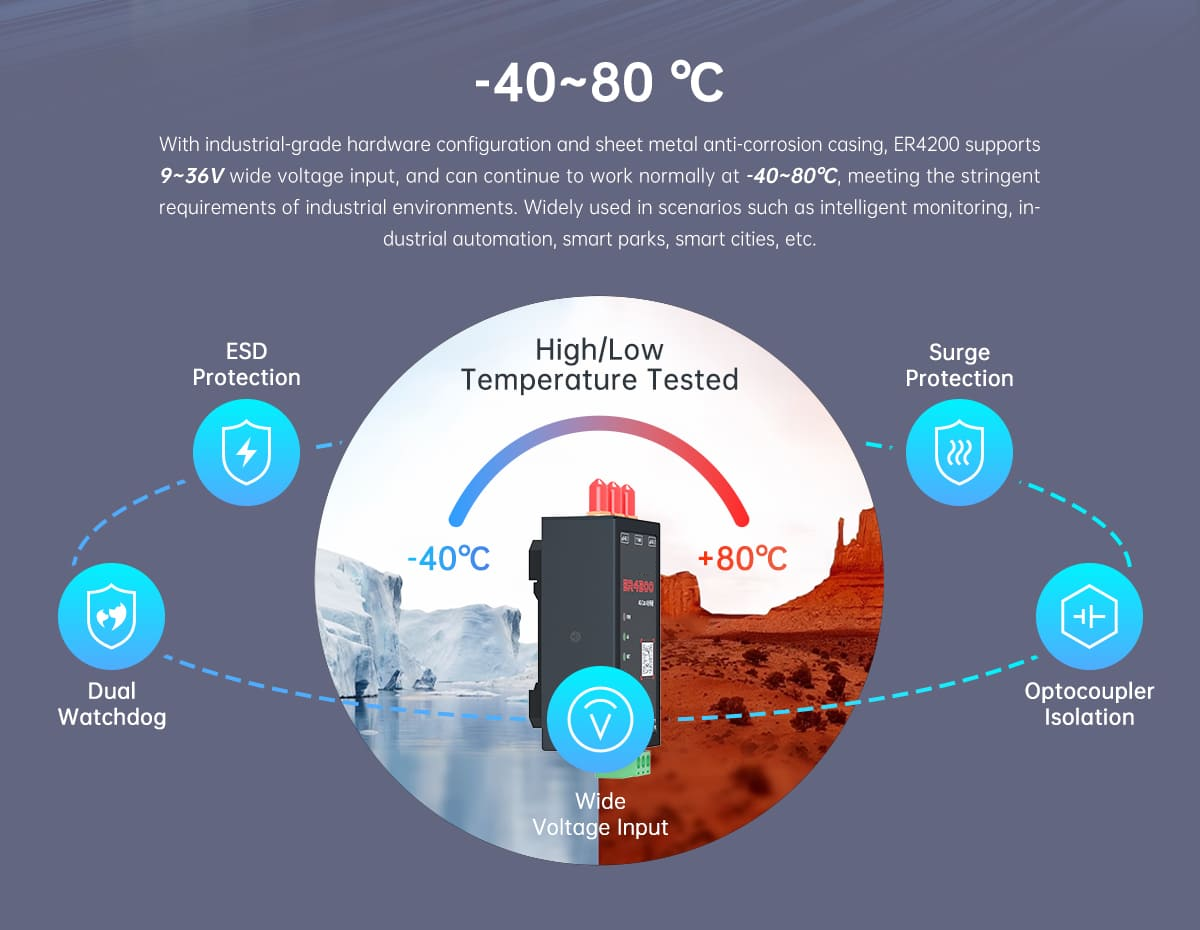 With powerful networking capabilities and flexible connectivity options, the ER4200 provides a dependable communication backbone for modern industrial IoT applications.
