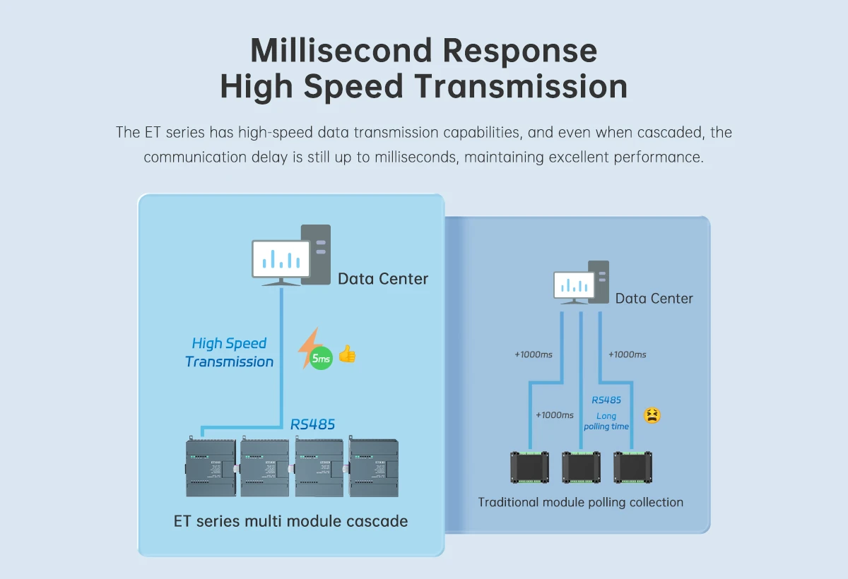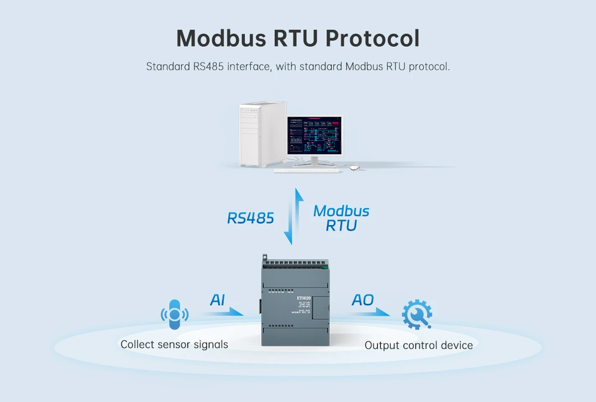 The ET1020 Analog I/O Expansion Module is a reliable industrial expansion device designed to enhance analog signal processing capabilities in automation and industrial IoT systems. It allows controllers, gateways, or PLC systems to expand their analog input and output channels for improved data acquisition and process control.